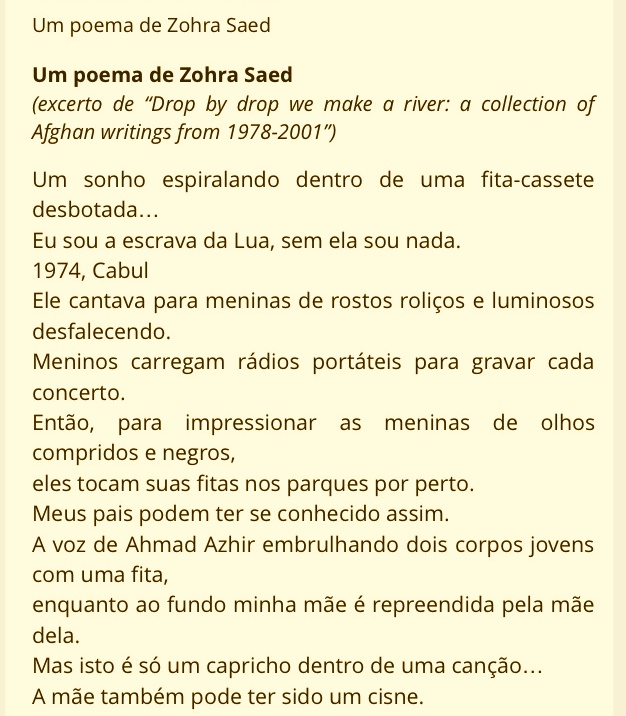 Sometimes, it takes writing a resume to find some wonderful nuggets of your own writing out in the universe. I rediscovered this Portuguese translation of my poem, originally for El Globo magazine that supplemented an article by Toni Marques, journalist and now director of an international literary festival out in Rio de Janiero. This was now on another Portuguese literary site.
